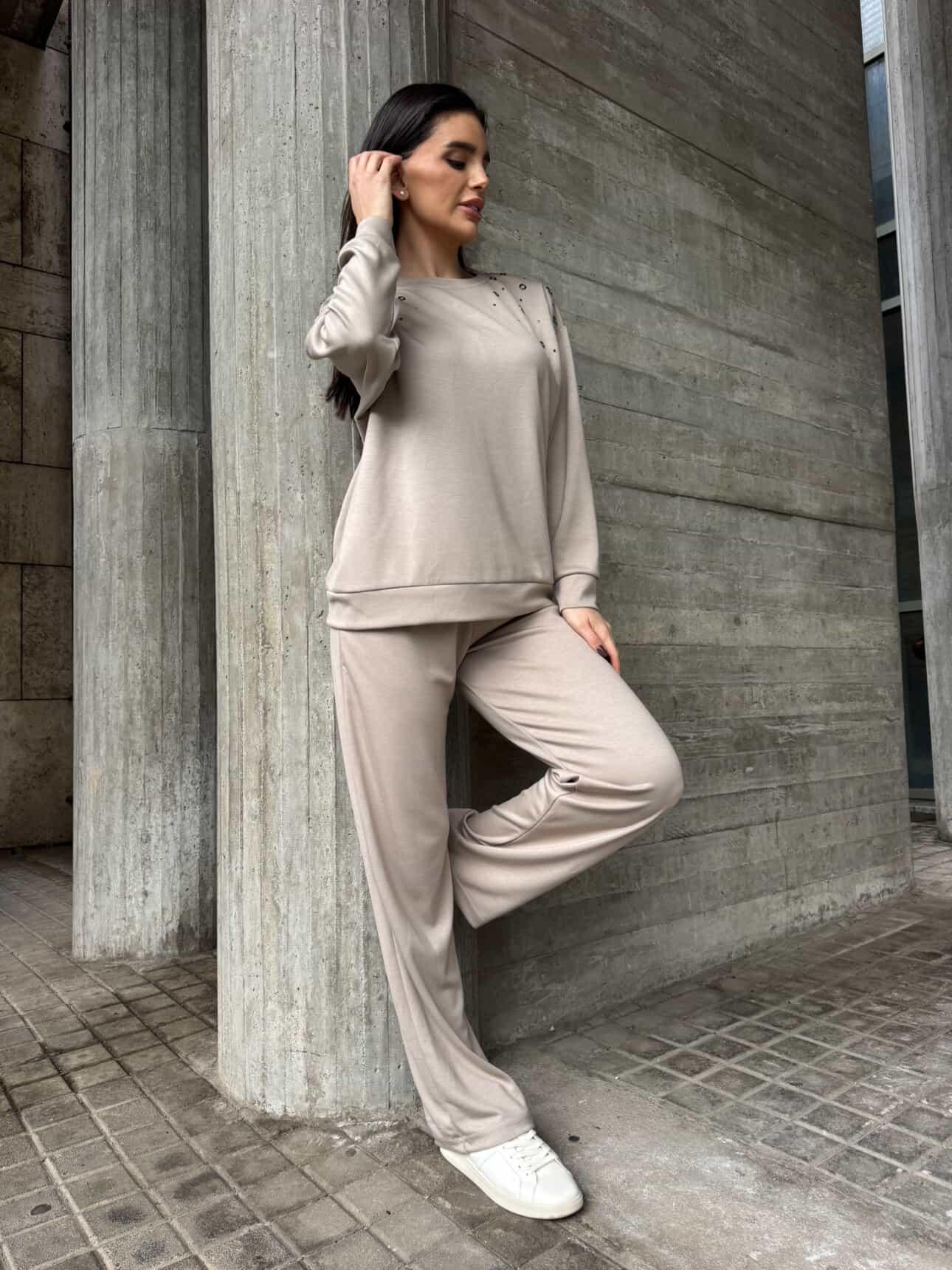 Μπεζ Σετ Φόρμες Γυναικείες Με Μεταλλικές Λεπτομέρειες