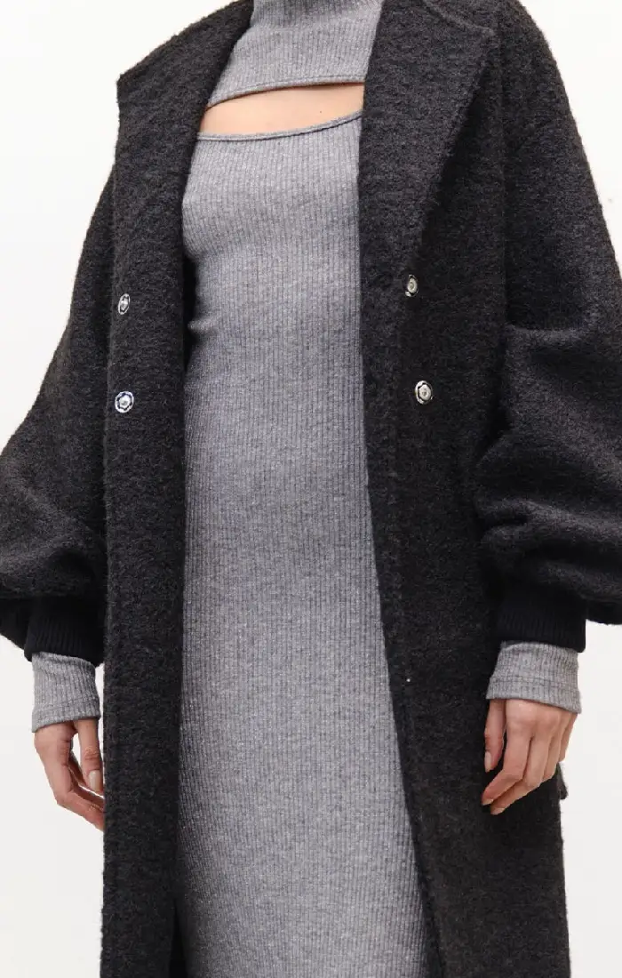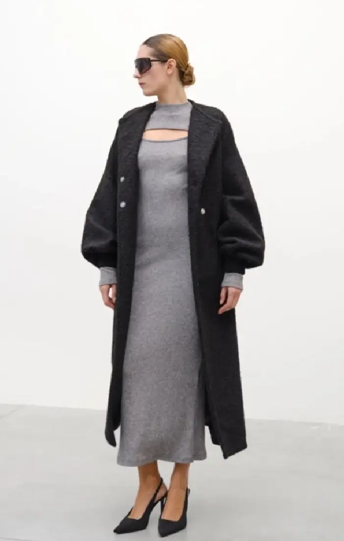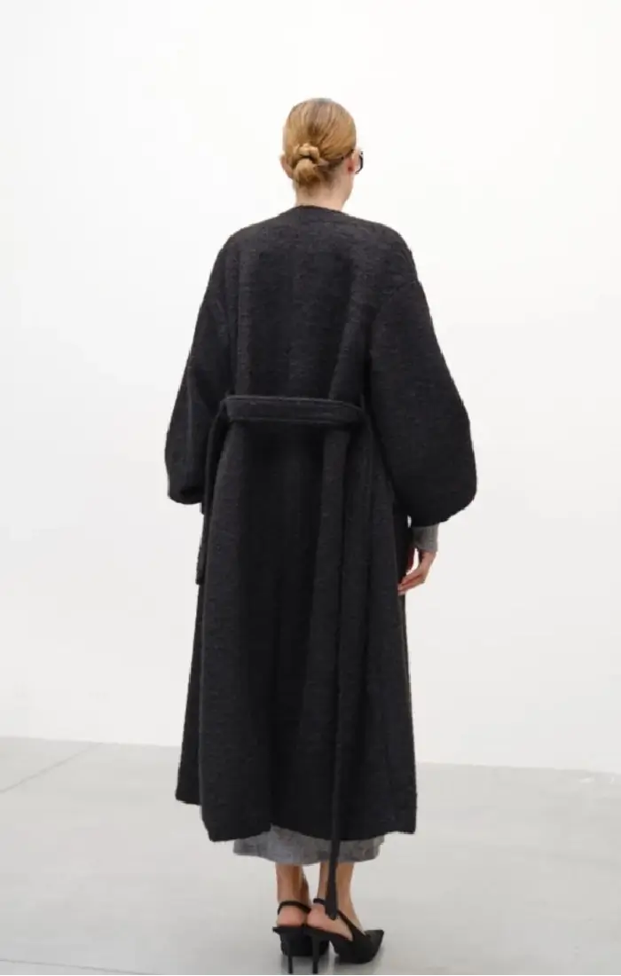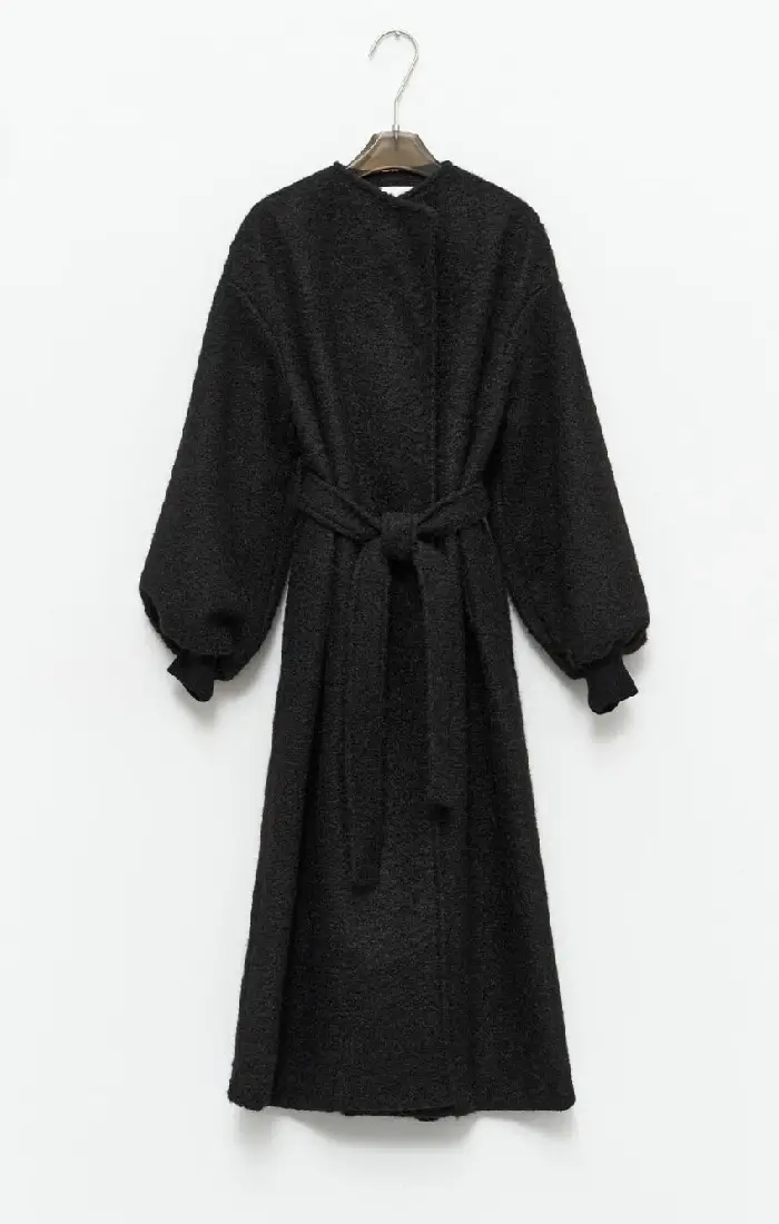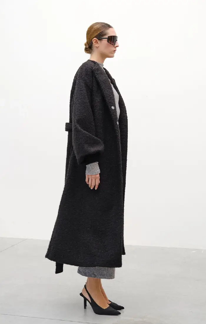 Μαύρο παλτό με ζώνη σε άνετη γραμμή