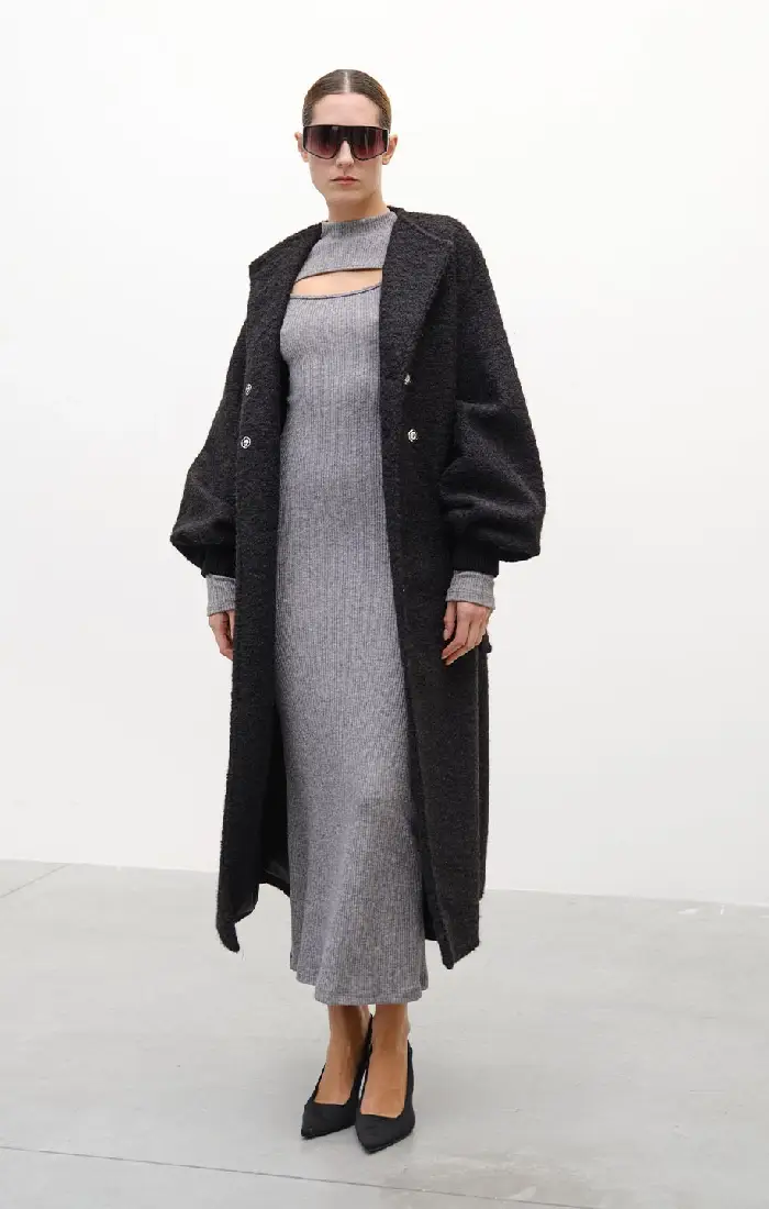 Μαύρο Παλτό Με Ζώνη Μακρύ Γυναικείο