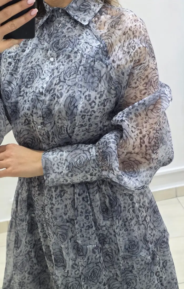 Μίντι φόρεμα μακρυμάνικο σεμιζιέ φλοράλ.